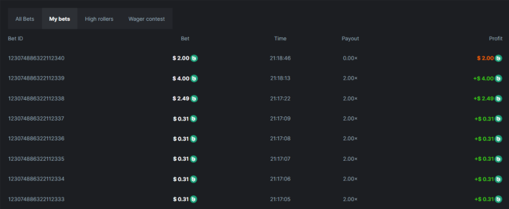 Consecutive orange wins: 7 Total basebets: 8,04$ Average basebet: 1,15$ https://bc.game/#/sd/119UPVRBC99AMR https://bc.game/#/sd/119UPWJASBZWNN https://bc.game/#/sd/119UPWY8BQEUXF https://bc.game/#/sd/119UPXFXAG9P1V https://bc.game/#/sd/119UPYMN8QQV4J https://bc.game/#/sd/119UPXP6E3VAJ7 https://bc.game/#/sd/119UPY3PJ0C64Z Overview: -