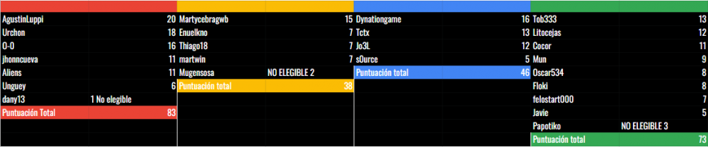 2. Mil disculpas, olvidé por completo publicar la lista de ganadores aquí, solo la publiqué en el chat Los premios ya fueron enviados hace 2 días: A los 4 mejores jugadores de cada equipo, y a todos los jugadores elegibles de los 2 equipos ganadores.