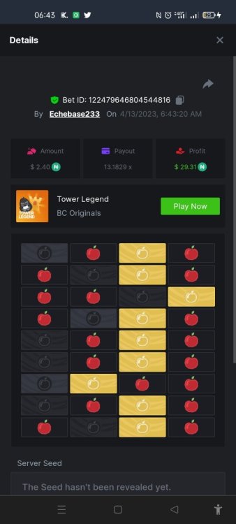 10. https://bc.game/#/sd/117H2E610NG5CJ The first one I posted I couldn't get the medium tower link. I didn't read the rules so I just did now and won this one. Again But busted though